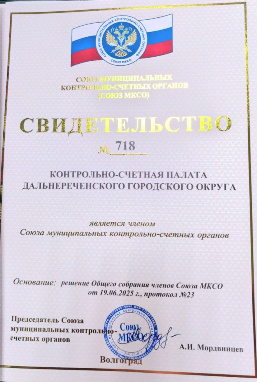 Контрольно-счетная палата Дальнереченского городского округа с 19.06.2025г является