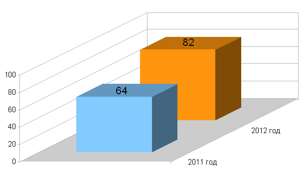 По сравнению с 2011 годом количество обращений увеличилось на 18, или на 28 %.