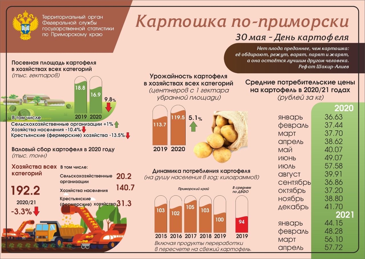 В крае в 2020 году выращено: зерна 382 тыс. тонн, бобов соевых – 377, овощей открытого грунта – 92, картофеля – 192 тыс. тонн.
